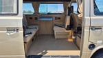 Die Weekender waren von VW für Kunden gedacht, die keinen Camper mit Küchenzeile benötigten, dennoch auf Ausflügen mit vier Personen in dem Wagen schlafen und zusätzliche Staumöglichkeiten haben wollten. So sind diese Bullis, ähnlich wie ein Multivan, mit ausklappbarem Tisch und Westfalia-Schlafbank ausgestattet. Darüber hinaus haben die Weekender das Westfalia Aufstelldach, unter dem zwei weitere Personen schlafen können, ringsherum Gardinen und einen zusätzlichen Stauschrank im Heck. Noch exklusiver als bei einem ´87er Weekender Wolfsburg Edition geht es also kaum.