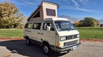 Dieser Weekender wurde im August 1990 als einer der letzten T3 im VW-Werk in Hannover gebaut. Fast typisch für den US-Markt, wurde auch er mit sehr vielen Extras versehen. So hat er, neben der Wärmeschutzverglasung, den Schiebefenstern, den elektrischen Fensterhebern, der Zentralverriegelung, dem Tempomat und dem Drehzahlmesser, auch die Klimaanlage unter dem Hochbett. Ein Extra, das es auch für den deutschen Markt gab, man aber so gut wie nie findet. Im Oktober 1990 traf der Bulli dann in Kalifornien ein und wurde hier an seinen ersten Besitzer übergeben. Dieser behielt ihn für 14 Jahre und verkaufte ihn dann an seinen zweiten Besitzer, ebenfalls in Kalifornien. Er behielt ihn für 18 Jahre, bis Derek ihn im Jahr 2022 kaufte. Als Bulli-Sammler wollte er ihn für seinen Sohn haben. Allerdings fuhr sein Sohn ihn aus zeitlichen Gründen so gut wie nie. Gut für uns, das war der Grund sich jetzt von dem Wagen zu trennen.