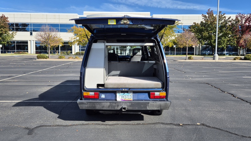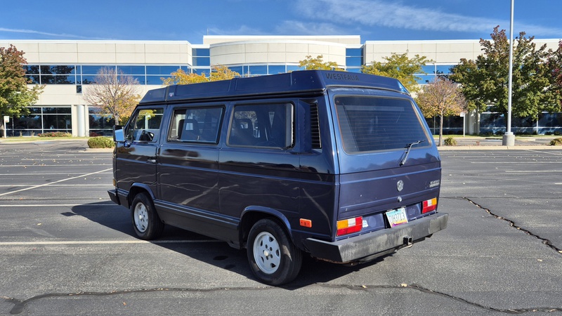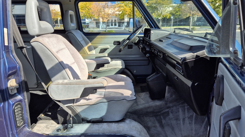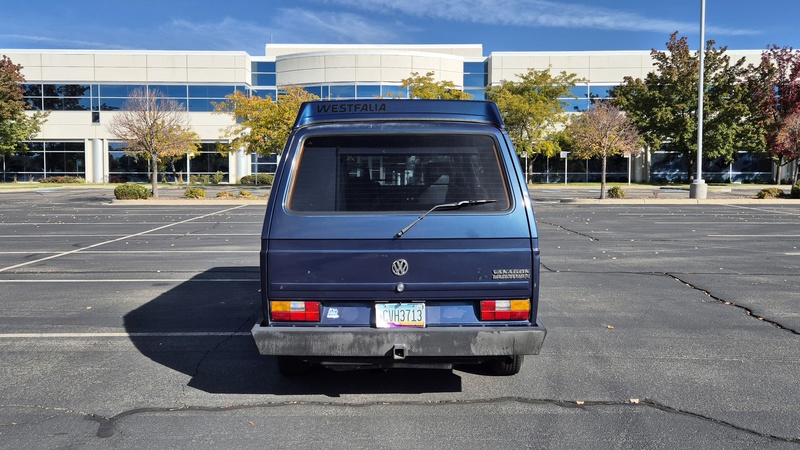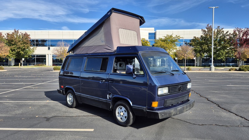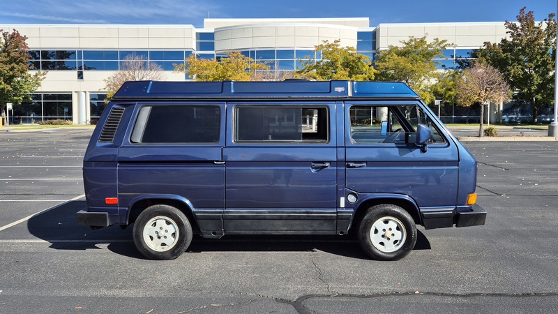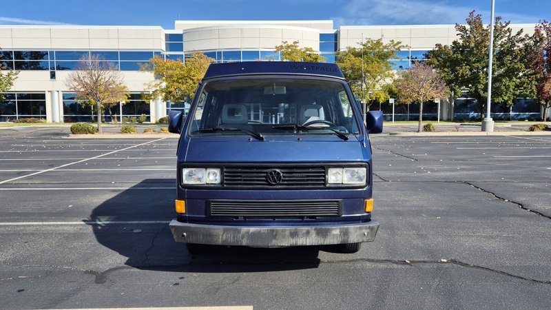 Diesen Weekender konnten wir von Jeff, einem Bekannten und Bulli-Sammler aus Utah kaufen. Der Bulli stammt aus dem Modelljahr 1991, wurde deshalb bereits nicht mehr im VW-Nutzfahrzeuge-Werk in Hannover, sondern bei Steyr-Puch im österreichischen Graz gebaut. Mit dem Modelljahr ´91 wurde in Hannover die Produktion auf den T4 umgestellt und da in Graz bereits seit einigen Jahren alle Syncro vom Band liefen, wurden jetzt auch alle anderen T3 dort gebaut. Genau wie die Limited Last Edition, die ebenfalls in Graz und ebenfalls in orlyblau metallic gebaut wurden, erhielt auch unser Bulli diesen Farbton. Die Weekender wurden von VW für Kunden herausgebracht, die ihren Bus als Daily Driver nutzen, zusätzlich aber einen Camper für Wochenendausflüge haben wollten. So wurde in den Weekendern keine Küchenzeile verbaut, dennoch die zum Bett umklappbare Rückbank, das Aufstelldach, das zwei weitere Schafmöglichkeiten bietet, sowie Stauschränke im Heckbereich. Die letzten Weekender erkennt man an den beiden Schriftzügen Vanagon und Multivan auf der Heckklappe, was es in dieser Kombination vorher so nie gab.