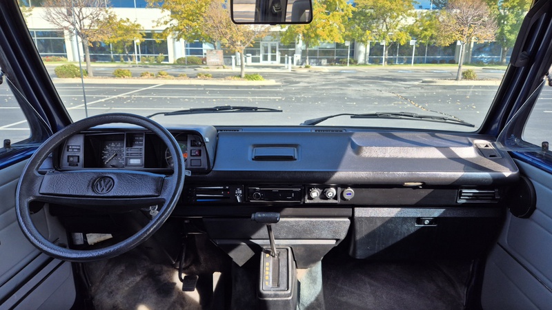 So traf der Weekender im Januar 1991 in den USA ein. Jeff übernahm ihn vor einigen Jahren in Las Vegas, brachte ihn in seine Werkstatt und führte einige Arbeiten durch. Er installierte einen neuen Faltenbalg im Aufstelldach, montierte "GoWesty Plate Steel Bumper" und führte eine Inspektion am 2,1 Liter Wasserboxer Motor durch. Die originalen Stoßstangen sind vorhanden und können auf Wunsch gerne wieder montiert werden. Der Bulli wurde in der Vergangenheit zum Teil lackiert, zum Teil befindet er sich noch im patinierten Erstlack. Der Lack sollte aufbereitet werden, wer einen Bus für den Showroom sucht, kommt an einer Neulackierung allerdings nicht vorbei. Das gleiche gilt für die Innenausstattung, sie benötigt eine Reinigung und wird dann noch deutlich besser aussehen. Die Politur und Innenraumaufbereitung können wir sehr gerne vermitteln. Die Technik macht einen guten Eindruck, der Bulli fährt problemlos.
