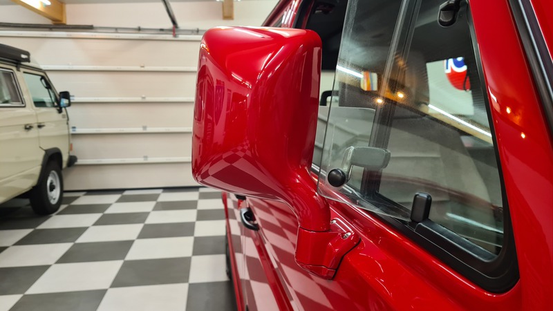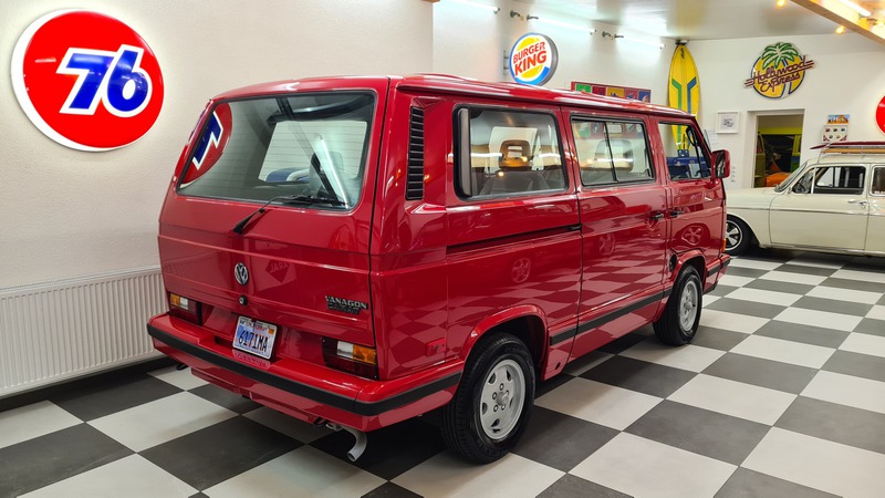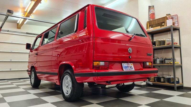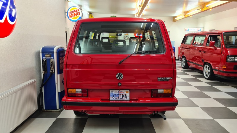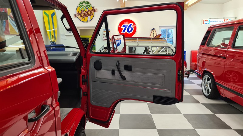 Hier kommen die Bilder und Infos zum tornadoroten Vanagon, den wir am 1. Weihnachtstag, bei unserem Freund und ehemaligen Mitarbeiter Rob abgeholt haben. Wir haben den Wagen im August 2021 in den USA aus Erstbesitz gekauft. Er hat eine ähnliche Geschichte wie der bordeauxroter Carat, den wir Anfang des Monats verkauft haben. Die Erstbesitzerin in den USA sitzt im Rollstuhl, weshalb der Bulli bereits als Neuwagen behindertengerecht umgebaut wurde. Weil so ein Umbau aufwändig und teuer ist, war der Bus 31 Jahre in ihrer Hand, wurde dabei sehr gepflegt und bis zu unserem Kauf nur 101.000 Meilen gefahren. Rob hat ihn nach der Ankunft in Deutschland von uns gekauft, den Umbau rückgängig gemacht und den Wagen anschließend optisch wie technisch überarbeitet. Seit der Fertigstellung vor zwei Jahren ist er weniger als 1.000 Kilometer gefahren und muss ihn jetzt aus gesundheitlichen Gründen leider abgeben.
