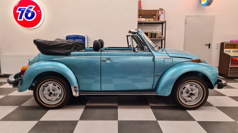 Heute folgen die Bilder und Informationen zum Käfer Cabrio, das wir Vorgestern bei unserem ehemaligen Mitarbeiter Rob abgeholt haben. Rob trennt sich aus gesundheitlichen Gründen von ein paar seiner Klassiker, diesen Wagen haben wir im Herbst 2023 gemeinsam in den USA gefunden und helfen deshalb jetzt auch sehr gerne beim Verkauf. Eins vielleicht vorweg, Rob hat, neben seiner Leidenschaft für T3 Bullis, einen wirklichen Faible für späte 1303 Cabrios aus den USA und in seinem Leben schon so einige dieser Fahrzeuge restauriert. Und er ist jemand, der alles möglichst original haben möchte. Dieser Wagen ist also aufgrund seiner perfekten Ausgangsbasis, der Erfahrung und der peniblen Überarbeitung, in einem Zustand, der so wirklich nicht häufig zu finden ist.
