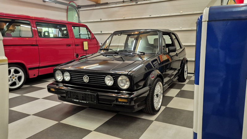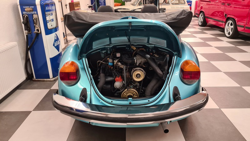 Nach der Ankunft in Europa hat Rob sein Cabrio dann zerlegt und komplett neu lackieren lassen. Aufgrund des kalifornischen Klimas, hatte die Karosserie dabei eine annähernd perfekter Ausgangsbasis. Das Häuschen ist bis heute ungeschweißt, lediglich an den Bodenhälften war etwas Handlungsbedarf nötig. Der Aufbau erfolgte unter Verwendung vieler Neuteile, das Verdeck wurde ebenfalls komplett überarbeitet, lackiert und inklusive Verdeckstoff und Innenhimmel neu aufgebaut. Bei der Innenausstattung ging er auf ähnlichem Wege vor, die Sitzgestelle wurden neu lackiert, neue Füllungen und Sitzbezüge, sowie neue Tür und Seitenverkleidungen etc. montiert. Bei allen Arbeiten wurde darauf geachtet, möglichst viele Originalteile zu verwenden und in gleicher Optik wie 1979 aufzubauen. Der Wagen war beim Ankauf auch technisch komplett original und unberührt, weshalb auch hier nach gleichem Muster vorgegangen wurde. Rob hat den originalen 1.6L / 50 PS Einspritzmotor (Motorkennbuchstabe AJ) bis auf das Kurbelgehäuse zerlegt, alles vermessen, gereinigt und penible wieder aufgebaut. Das Getriebe wurde ebenfalls überprüft, gereinigt und hat einen Ölwechsel erhalten. Bremsen und Fahrwerk wurden durchgesehen und überarbeitet, viele Verschleißteile erneuert. Die originalen Stahlsportfelgen wurden neu lackiert und neue Weißwandreifen montiert.