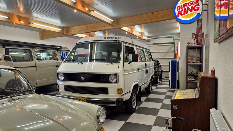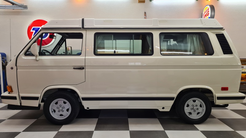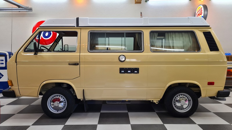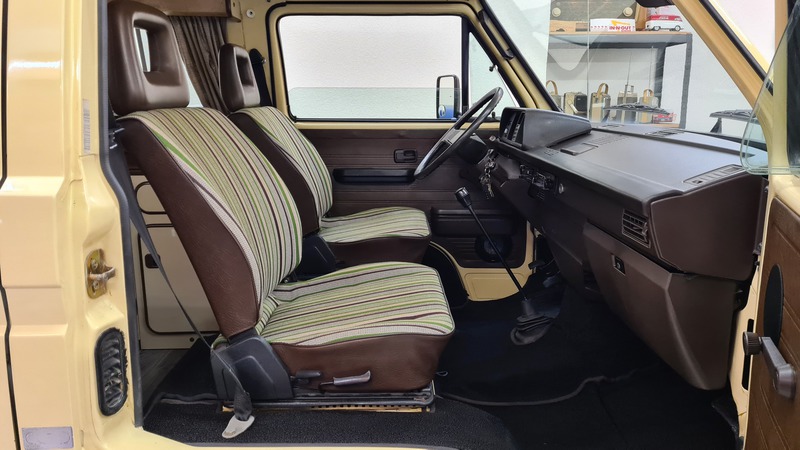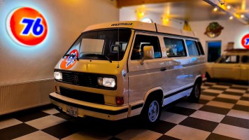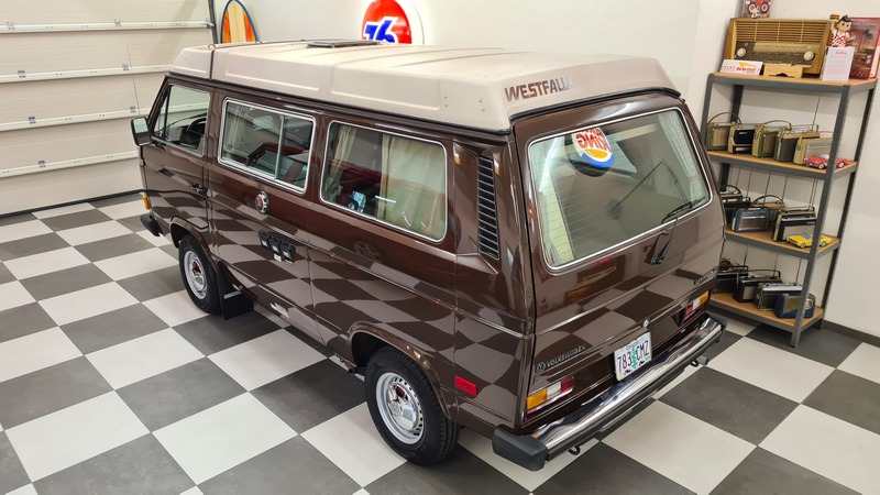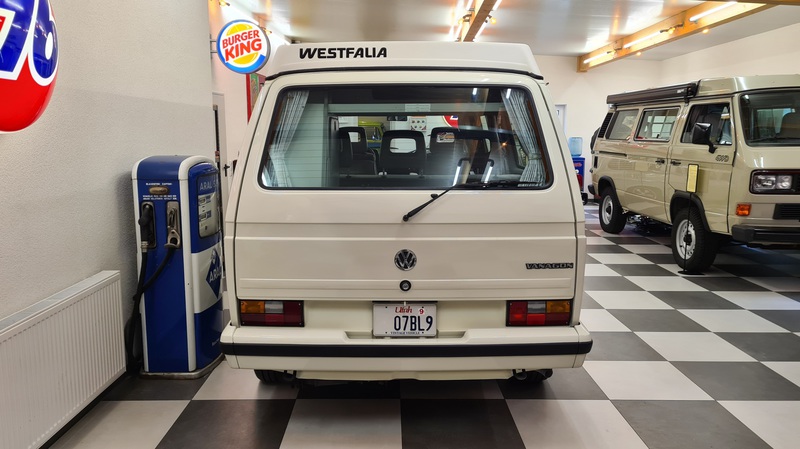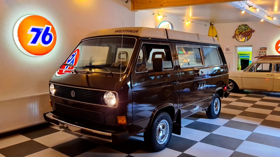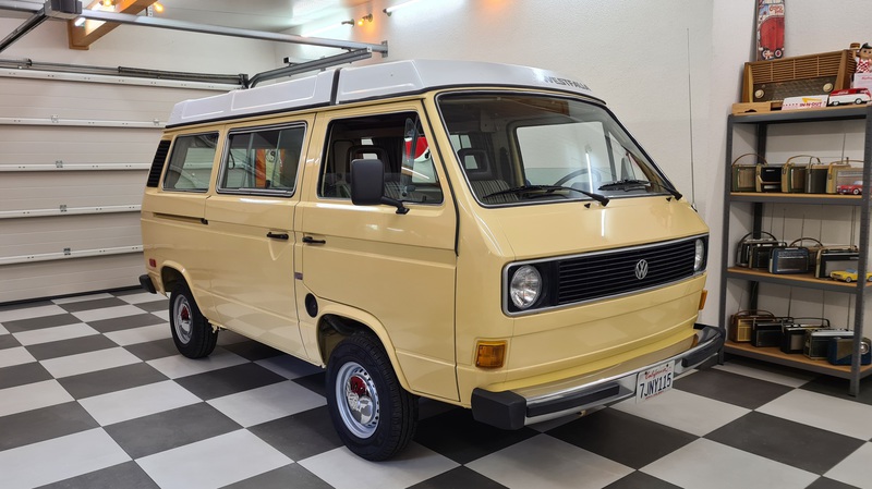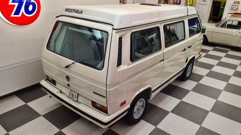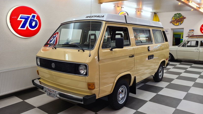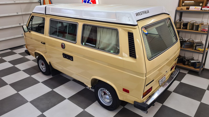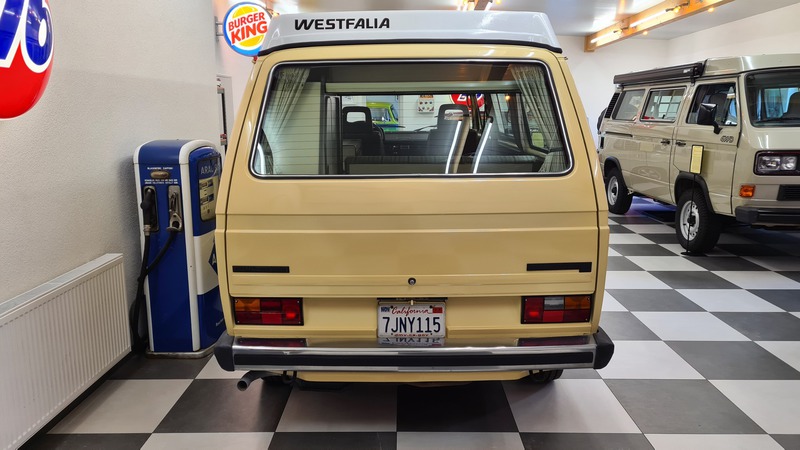 Mit dem Produktionsmonat Juli 1982 wurde dieser T3 kurz vor den Sommerferien im VW-Nutzfahrzeugwerk in Hannover gebaut und war damit, nach über 30 Jahren Produktion luftgekühlter VW-Busse, einer der allerletzten seiner Art. Mit Beginn des neuen Modelljahres nach den Sommerferien 1982 wurde die Produktion des T3 auf Wasserkühlung umgestellt. So wurde der Wagen dann mit seinem 2,0-Liter / 70-PS-Motor nach Kalifornien verschifft, wo er im November desselben Jahres eintraf. In Elfenbein und mit Sitzen im Bezugsstoff „Joker grün-braun“ war dieser Vanagon L Westfalia dem deutschen Sondermodell „Joker“ optisch sehr ähnlich. Für den kalifornischen Markt wurden die Vanagon L ab Werk dann mit einigen Extras versehen. So gab es die grüne Wärmeschutzverglasung mit vorderen Ausstellfenstern sowie mittleren Schiebefenstern. Die Leisten in den Scheibengummis, die Radkappen und die Stoßstangen wurden in Chrom ausgeführt. Der Innenraum wurde zudem mit Uhr und Prallleiste auf dem Armaturenbrett ausgestattet. Die Westfalia-Ausstattung bot mit ihrem Aufstelldach und der zum Bett umklappbaren Rückbank Schlafplätze für vier Personen. Zudem gibt es neben vorderen Drehsitzen, einem Tisch, Kocher und Kühlschrank viele Staumöglichkeiten.