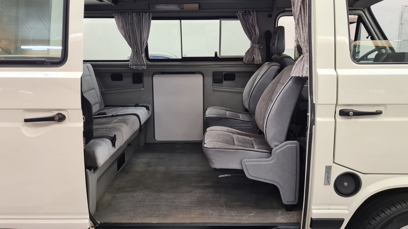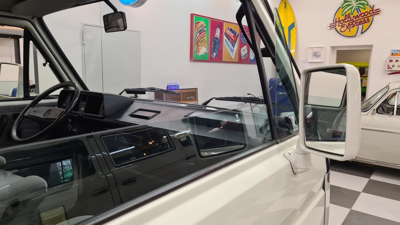 Man kann sich vorstellen, dass auch die Technik mit dem 2,1 Liter / 95 PS WBX Motor nachweißlich regelmäßig und umfangreich gewartet wurde. Der Bulli wurde selbstredend als Automatik ausgeliefert. Wir haben die Technik durchgesehen, eine Motorinspektion durchgeführt und ein paar Verschleißteile an Bremse und Fahrwerk erneuert. So hat auch dieser richtig schöne Carat die Abnahme ohne Mangel bestanden und kann jetzt direkt zugelassen werden. Eine Besichtigung bei uns in Hückelhoven ist nach Terminabsprache jederzeit gerne möglich.
