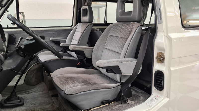 So wurde der Neuwagen dann Ende 1990 in die USA verschifft. Der Erstbesitzer hatte ihn als Vanagon Carat bestellt, der Top Ausstattung der T3 Multivan für den US-Markt. Außen hatten diese Fahrzeuge die „dicken“ Stoßstangen mit Frontspoiler, die passenden Seitenbeplankungen, die in Wagenfarbe lackierten, elektrisch verstellbaren Spiegel und die rechteckigen Doppelscheinwerfer. Innen wurden die Vanagon Carat mit der Multivan-Ausstattung versehen, somit ab Werk mit zum Bett umklappbarer Rückbank, ausklappbarem Tisch, Transistorleuchte und den beiden Back to Back Sitzen. Im „Luxuxmodell“ Carat gab es dann zusätzlich die große Klimaanlage, Veloursitzen mit Armlehnen vorne, das gepolstertem Armaturenbrett, das passend zur Servolenkung kleinere und ebenfalls gepolsterte Lenkrad, Drehzahlmesser, Tempomat, Zentralverriegelung und viele weiteren Extras. Zusätzlich wurde hier dann noch die grüne Wärmeschutzverglasung mit Ausstellfenstern vorne und Schiebefenstern in der Mitte, sowie das damals aufpreispflichtige Automatikgetriebe verbaut. Somit ist sicherlich auch dieser Multivan an originalen Extras kaum zu überbieten.