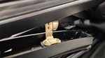 Der Besitzer vor Mike hatte den Bulli 24 Jahre lang. Er nutzte ihn hauptsächlich als „Toad“, also als gezogenes Fahrzeug hinter einem großen US-Wohnmobil (RV), um so am Zielort mit ihm auf kleinere Wochenendtouren zu gehen, während das RV abgestellt wurde. Hiervon ist auch noch die Deichsel an der Front vorhanden. Im Heckbereich ist eine US-Anhängerkupplung montiert, die in Deutschland nicht zulässig ist und von uns, genau wir die Deichsel, vollständig zurückgerüstet wird. Aus optischen Gründen, passend zu der schwarzen Deichsel und der schwarzen Anhängerkupplung, wurde im unteren Bereich der Schweller, schwarze Farbe aufgetragen. Hier wurde kein Rost entfernt oder etwas repariert, wie man vielleicht vermuten könnte. Ein Trend, den wir hier leider immer öfter sehen und der aus optischen Gründen oft sogar bis in die typische Höhe der Multivanbeplankung gemacht wird. Da hier zum Glück nur sehr dünn aufgetragen wurde und es kein 2k Lack ist, werden wir ihn in Deutschland einfach wieder entfernen, so dass auch dort wieder der Erstlack zum Vorschein kommt.