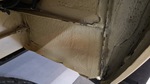 Typisch für das trockene kalifornische Klima befindet sich die Karosserie in sehr gut erhaltenem und ungeschweißtem Zustand. So gut, dass wir uns rein auf Pflege- und Erhaltungsmaßnahmen beschränken konnten. Nach seiner Rückkehr nach Deutschland haben wir den Wagen trockeneisstrahlen lassen, um die Verschmutzungen der letzten Jahrzehnte zu entfernen und den elfenbeinfarbenen Lack am Unterboden wieder zum Vorschein zu bringen. Die Bilder sprechen für sich, sehr viel anders wird dieser Unterboden bei der Auslieferung wahrscheinlich auch nicht ausgesehen haben. Auf einigen Bauteilen sind sogar noch die originalen Werksmarkierungen vorhanden. Auch der Rest des Fahrzeugs wurde überarbeitet. Der Außenlack wurde poliert und versiegelt, alle Scheiben wurden ausgebaut und mit neuen Scheibengummis samt neuer Chromleisten wieder montiert. Für den TÜV wurden neue Hauptscheinwerfer montiert und dabei gleich ein neuer Scheinwerfergrill im originalen Design mit silbernem Rand angebracht. Die originalen Stahlfelgen wurden entlackt, pulverbeschichtet und mit neuen Reifen sowie neuen Chromradkappen versehen. Die Innenausstattung wurde ebenfalls aufbereitet, die vorderen Sitze haben dabei neue Bezüge im originalen Design erhalten.